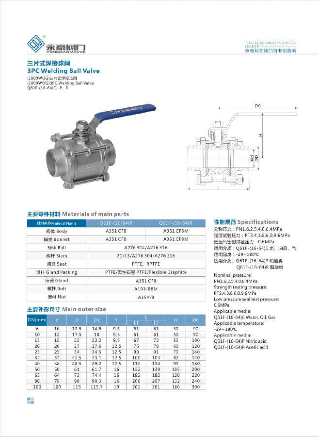 三片式焊接球閥